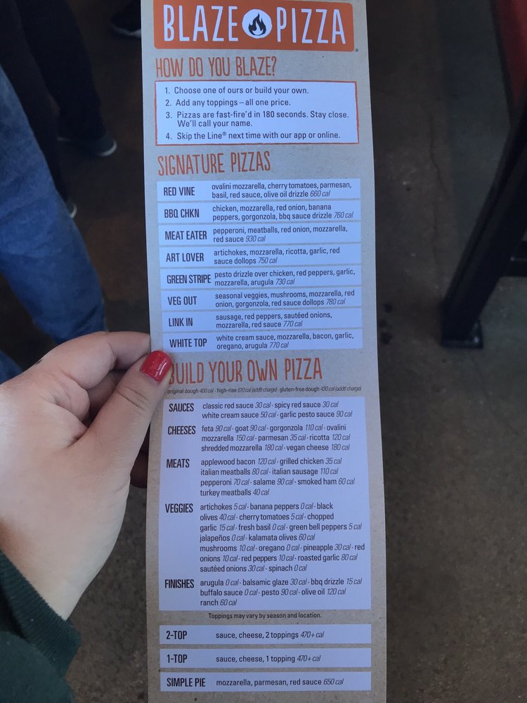 “ Blaze pizza is always amazing. Only thing, on their website, I can never seem to find where to tip the delivery driver. And also wish the pizza could be warmer. Not even 5 minutes in to eating, pizza was COLD. Its a good thing pizza taste good when its cold. Haha ”